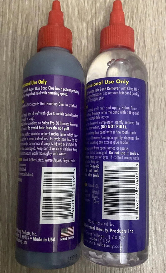 (2)NUMBER 1 - SALON PRO 30 SEC. SUPER HAIR BOND GLUE&Remover Pro 8OZ (237ml)
