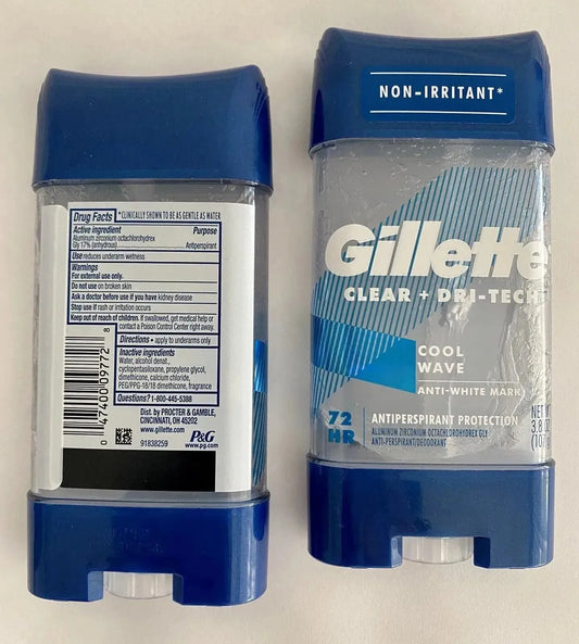 🌊Gillette Antiperspirant Deodorant for Men, Cool Wave72HR 2 Pack Clear+Dry+Teck