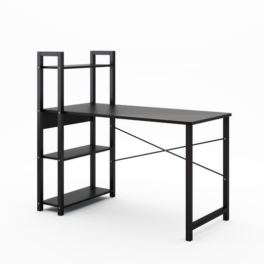 Bedroom desk, steel frame, computer desk, student desk, desk with 4 storage shelves, computer desk, metal and wood