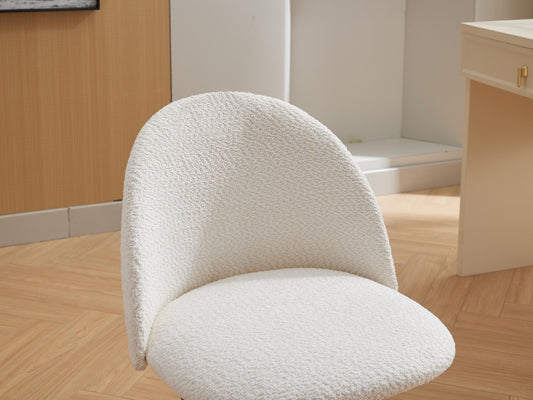 Velvet fabric office chair, mid back adjustable rotating computer chair, black legs, cushioned office chair with wheels ,White