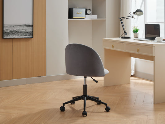 Velvet fabric office chair, mid back adjustable rotating computer chair, black legs, cushioned office chair with wheels
