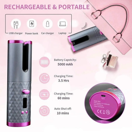 Professional USB Rechargeable Wireless Hair Roller Curler Curling Irons Portable Ceramic Cordless Automatic Hair Curler