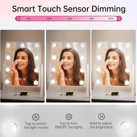 Hollywood Lighted Makeup Mirror, Lighted Vanity Mirror With 9 Dimmable Bulbs And 3 Color Lighting Modes, Smart Touch Control, Plug In Light Up Mirror, Gift