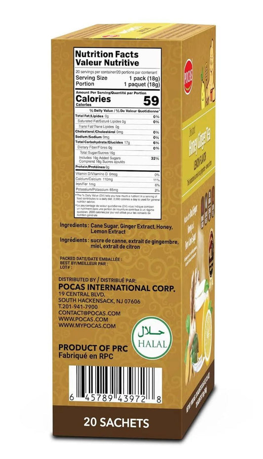 Pocas Ginseng flavor Instant Lemon Honey Ginger Tea -20sachets - Gluten Free - No Caffeine ✅