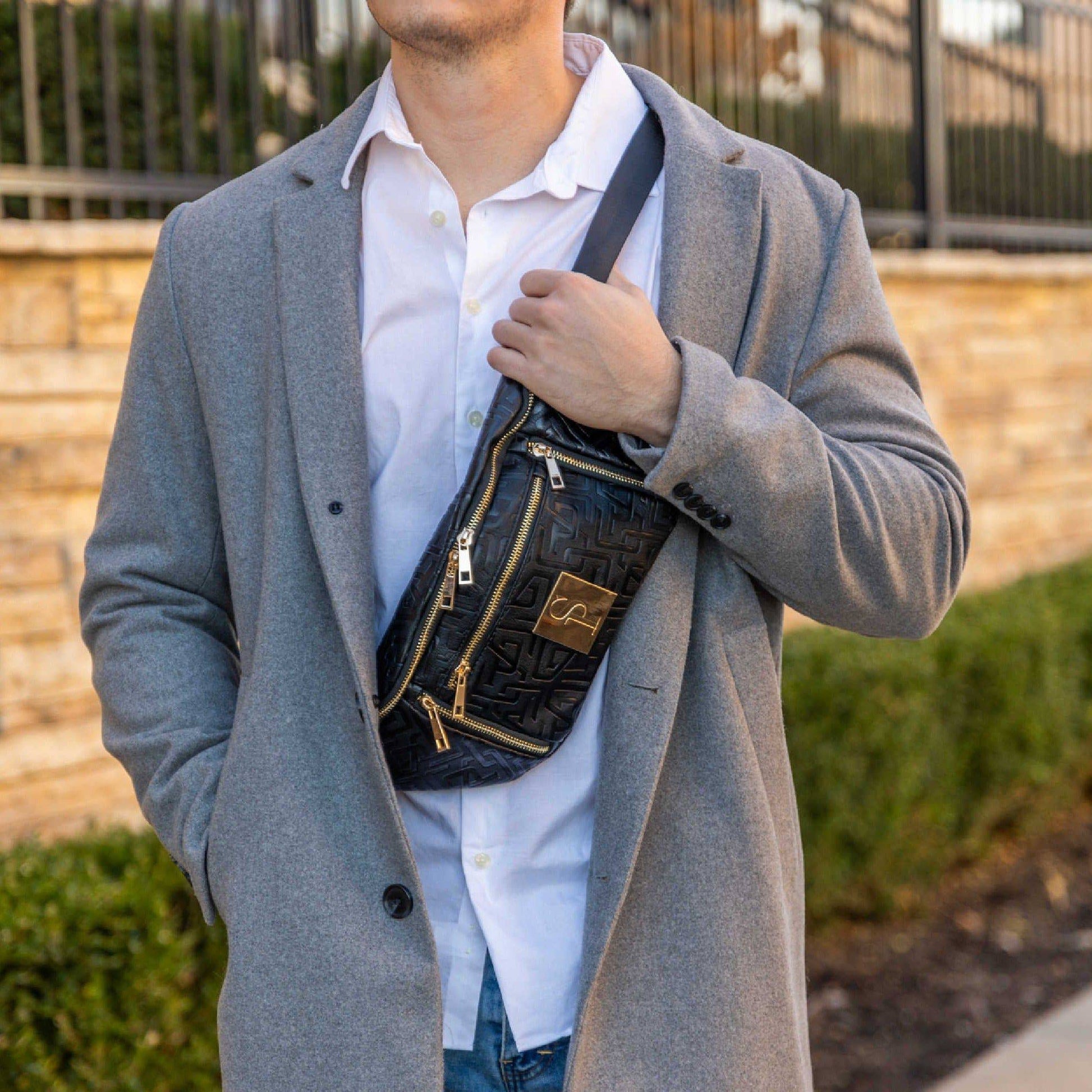 Our Black Monogram Leather Crossbody is the latest in the Sling Bag Line. Our new sling bags are made with Premium Leather and designed to wear around your waist, across your body as well as off your shoulder. Lifestyle crossed with Luxury.