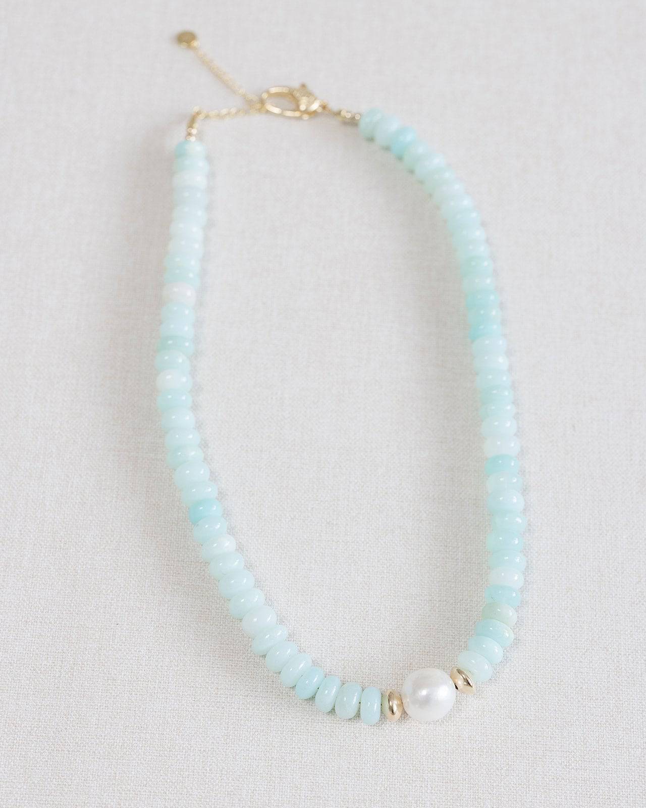 Our Capri necklace features stunning opal beads & a fresh water pearl with 14k gold vermeil hardware. Elevate your style with this beautiful and versatile piece.