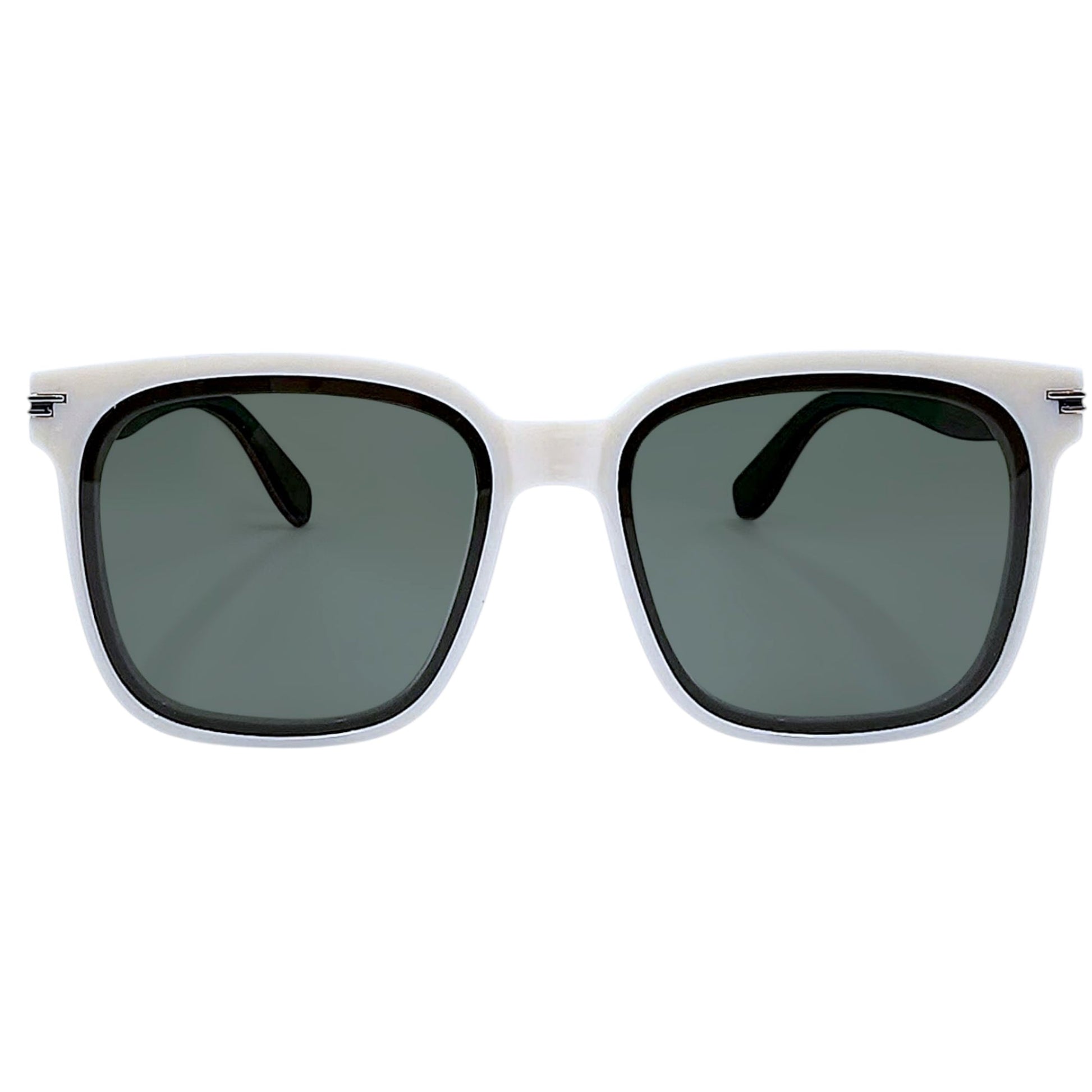 Premium oversized wayfarer frames with handcrafted spring hinge beechwood arms. Detail front and side accents on frame and signature Habibe logo on arms.