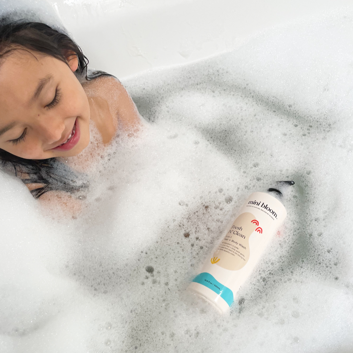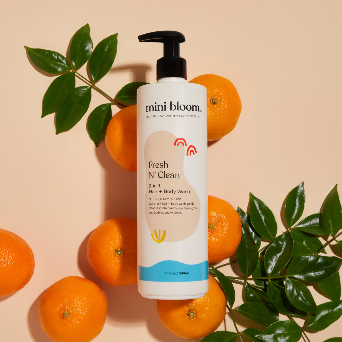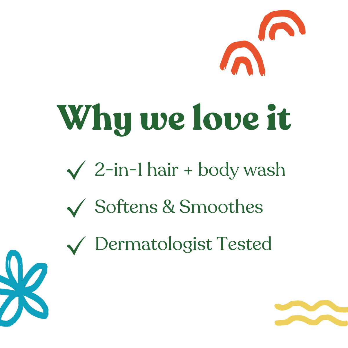 Our sulfate free 2-in-1 hair + body wash gently cleanses from head to toe.