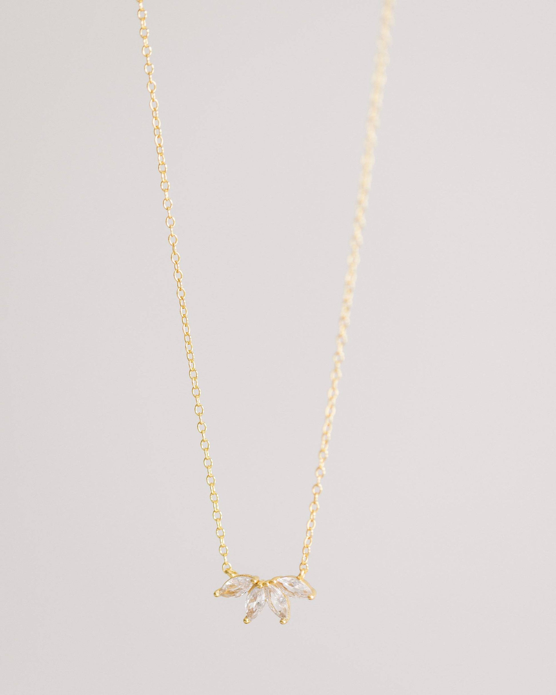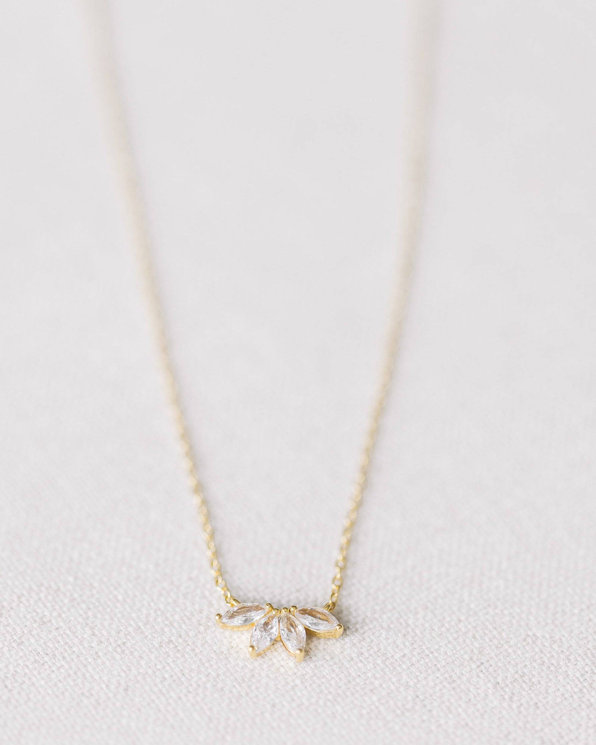 This stunning Gold Crystal Flower Necklace is crafted from gold vermeil with a beautiful crystal flower.
