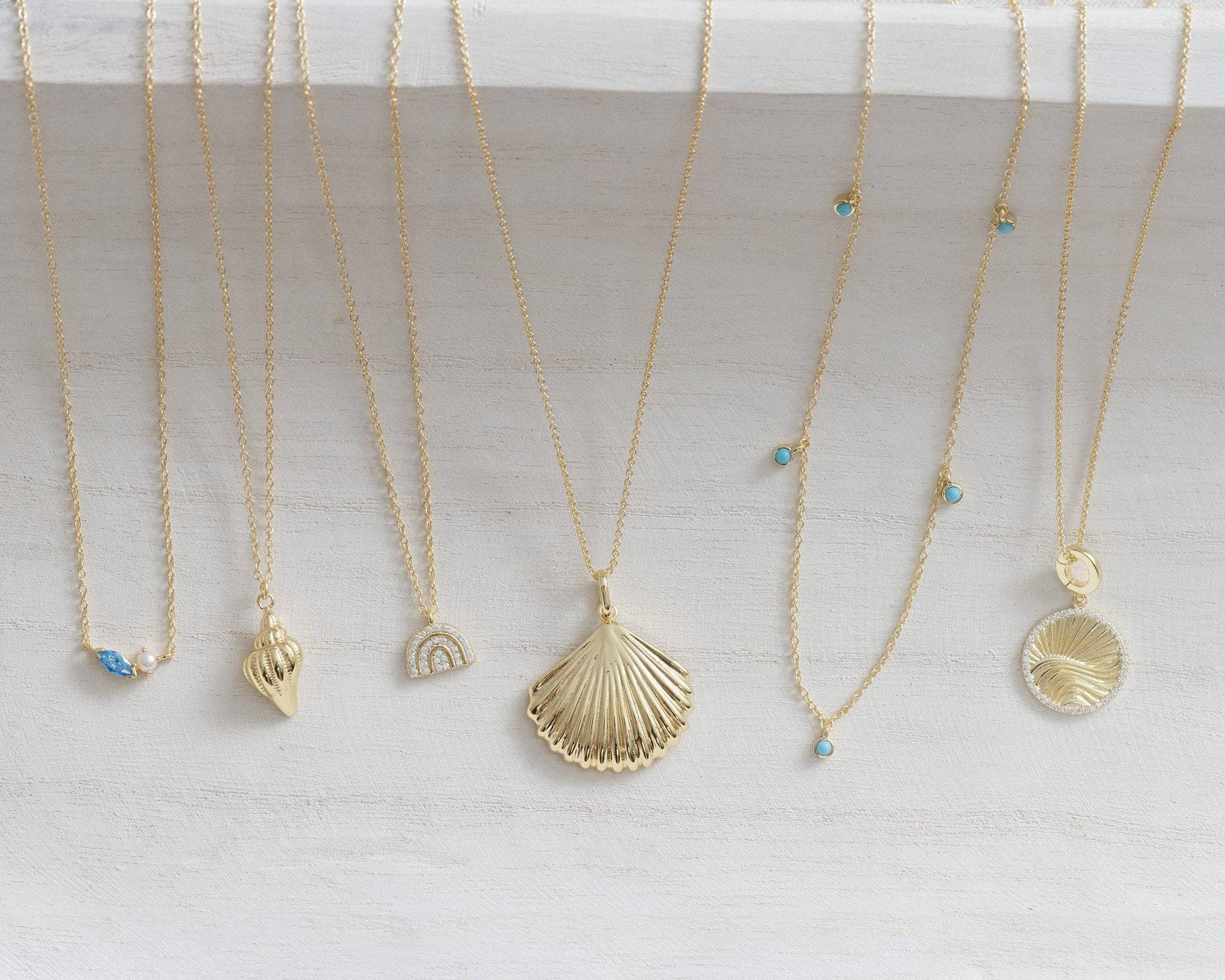 This beautiful Gold Sanibel Necklace is crafted from 14k gold vermeil and shaped like a flat scallop shell. A timeless piece and a reminder of the graceful beauty of the ocean.