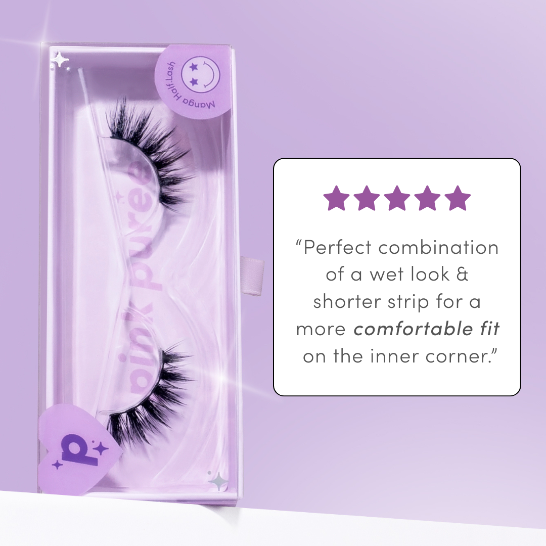 Kira Kira from the Manga Muse Collection creates an effortless wet lash look with cartoon-like wispy spikes. Her shorter lengths (7-14mm) deliver soft, delicate definition that instantly enhances your natural beauty. The half-lash style and pre-cut 3/4 band make application seamless—no trimming, no inner corner poking! Perfect for everyday wear or a touch of subtle sparkle.