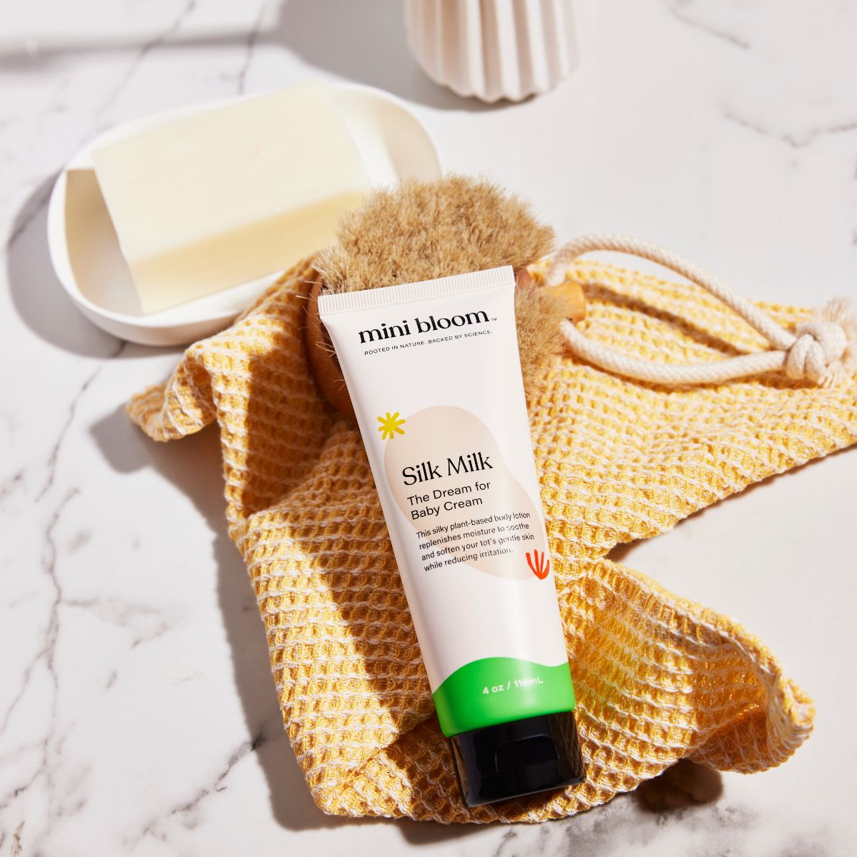 This silky plant-based body lotion replenishes moisture to soothe and soften your tot's gentle skin while reducing irritation.